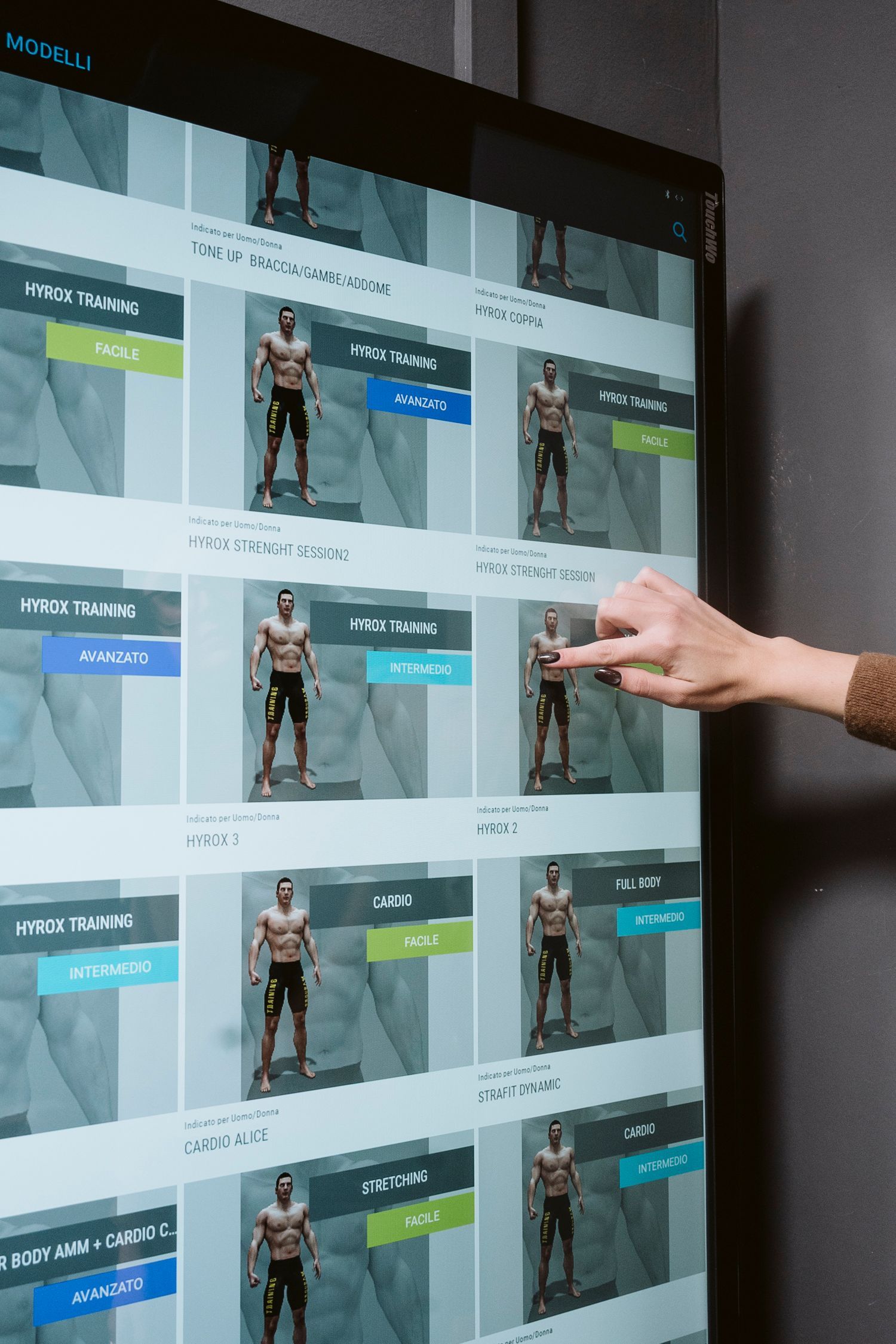 Ogni utente ha il suo allenamento personalizzato che eseguirà con l’ausilio di schermi interattivi dotati di Intelligenza Artificiale.